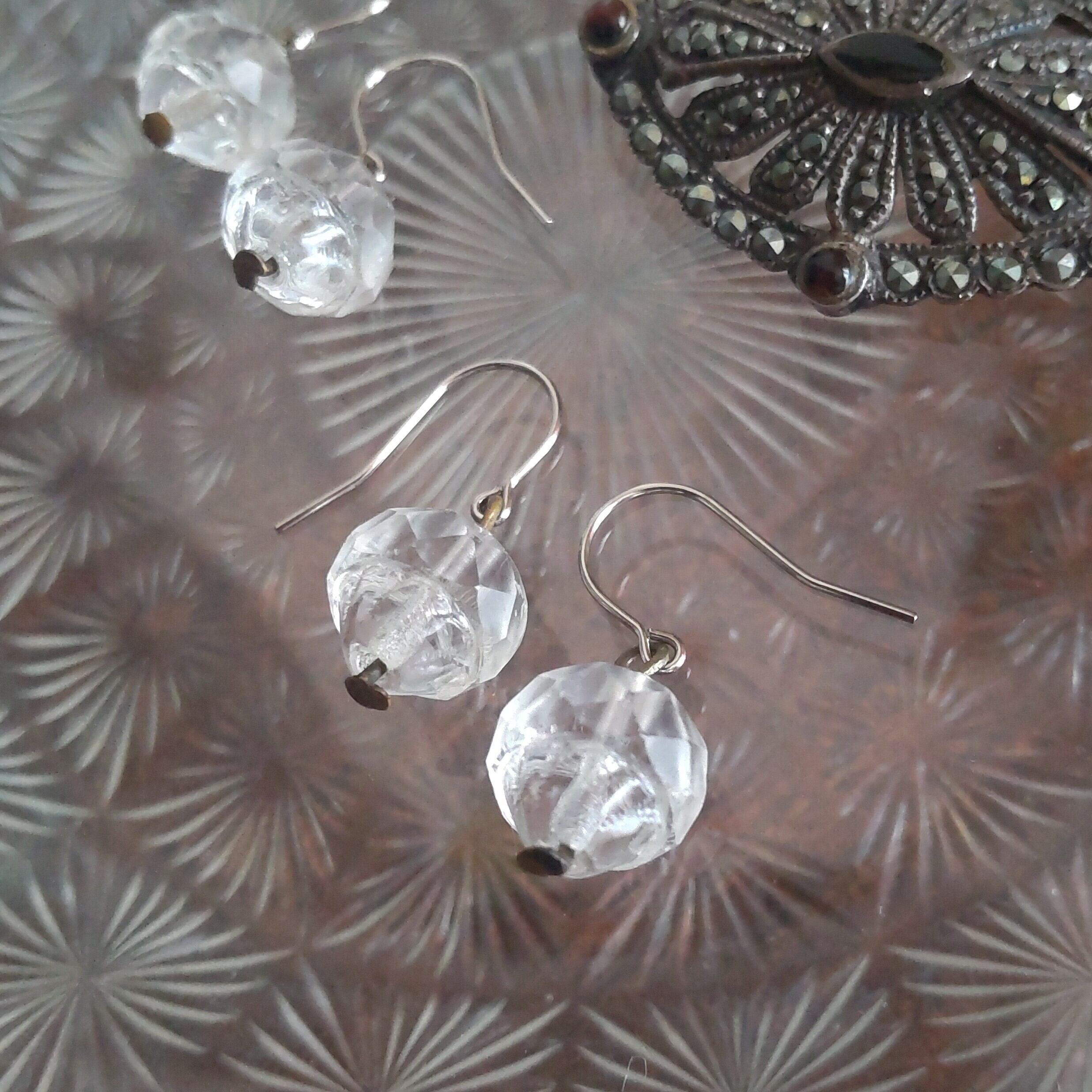 小ぶりで可愛らしく、控えめで柔らかな光が素敵なアンティークピアスです
