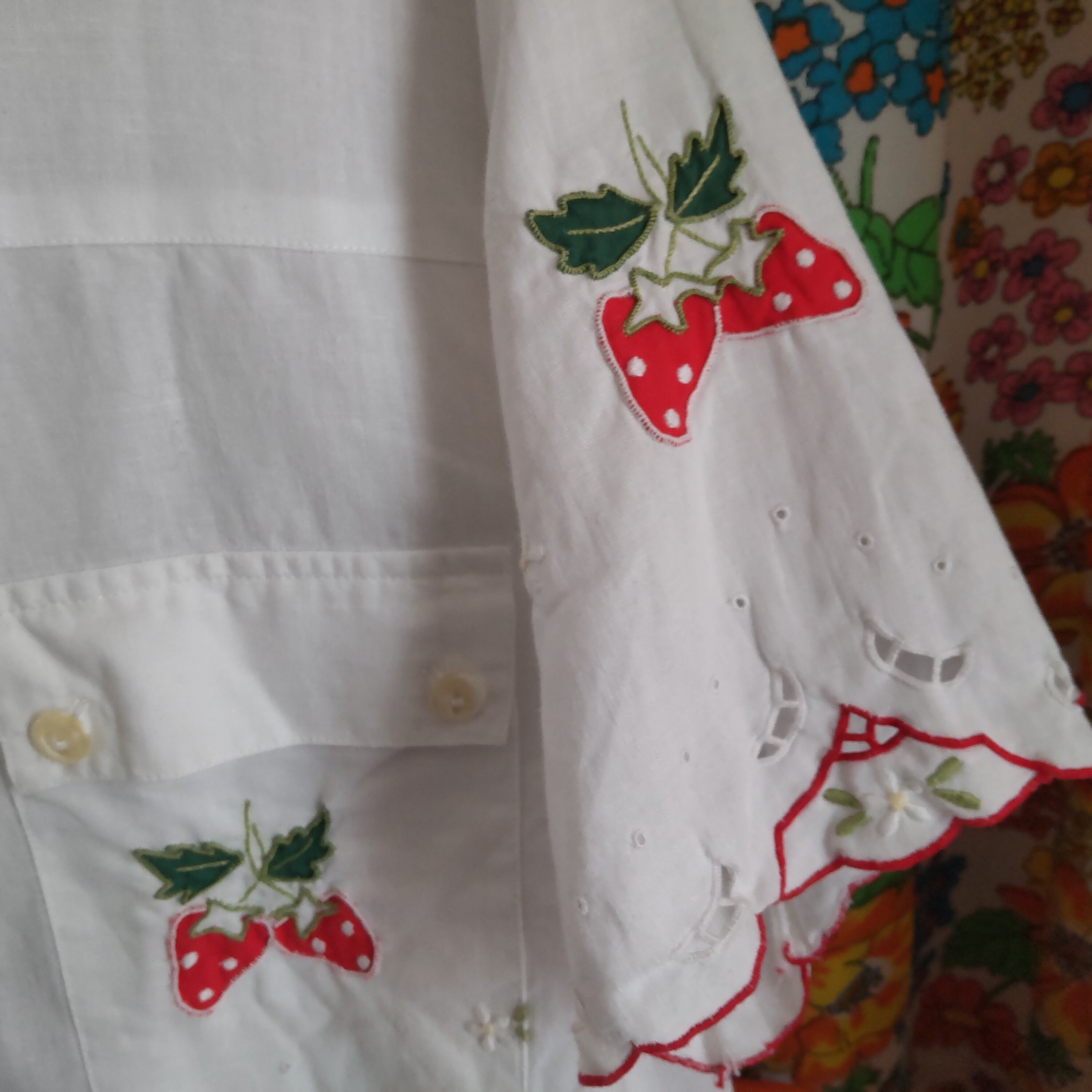いちごのワッペンと刺繍のかわいいヴィンテージシャツです