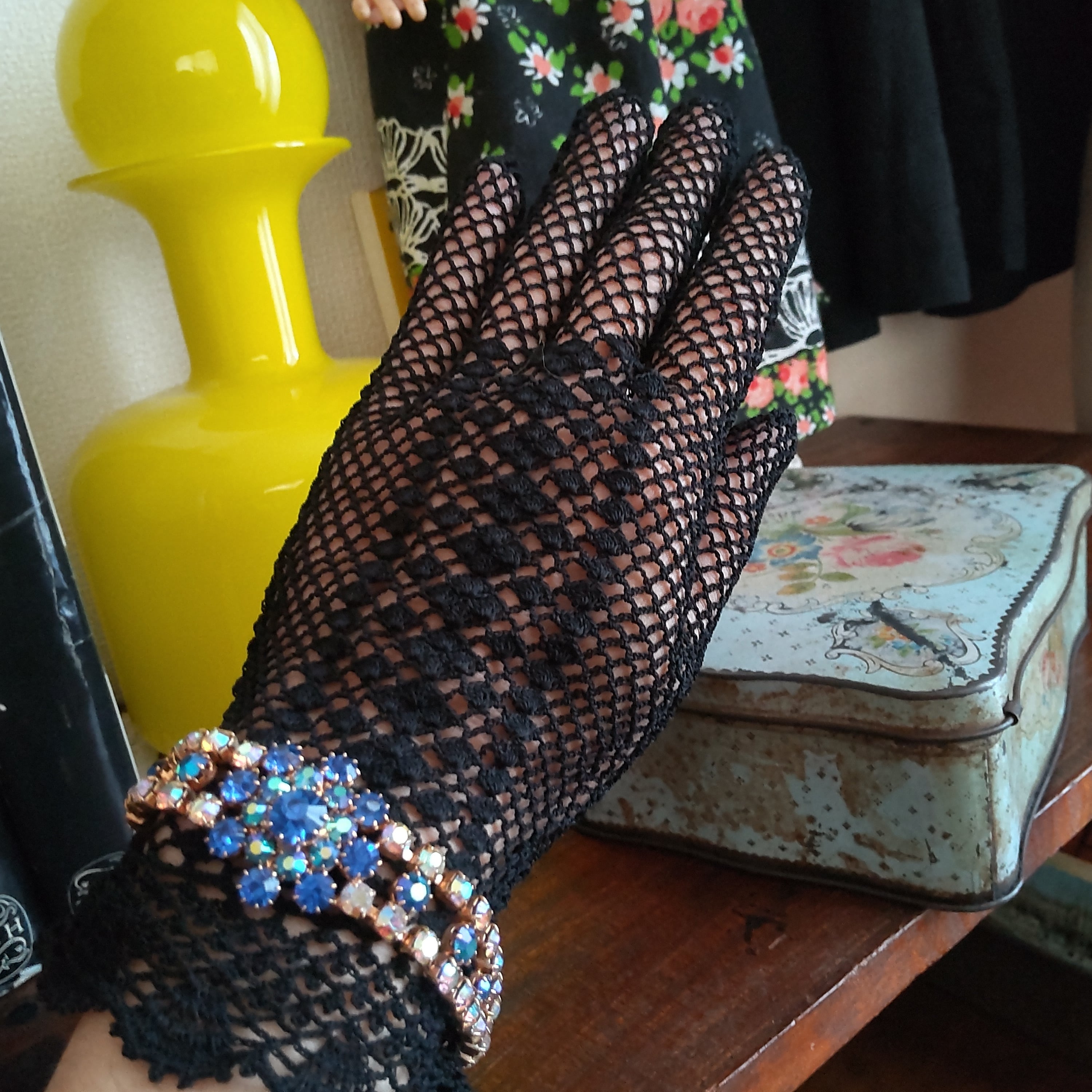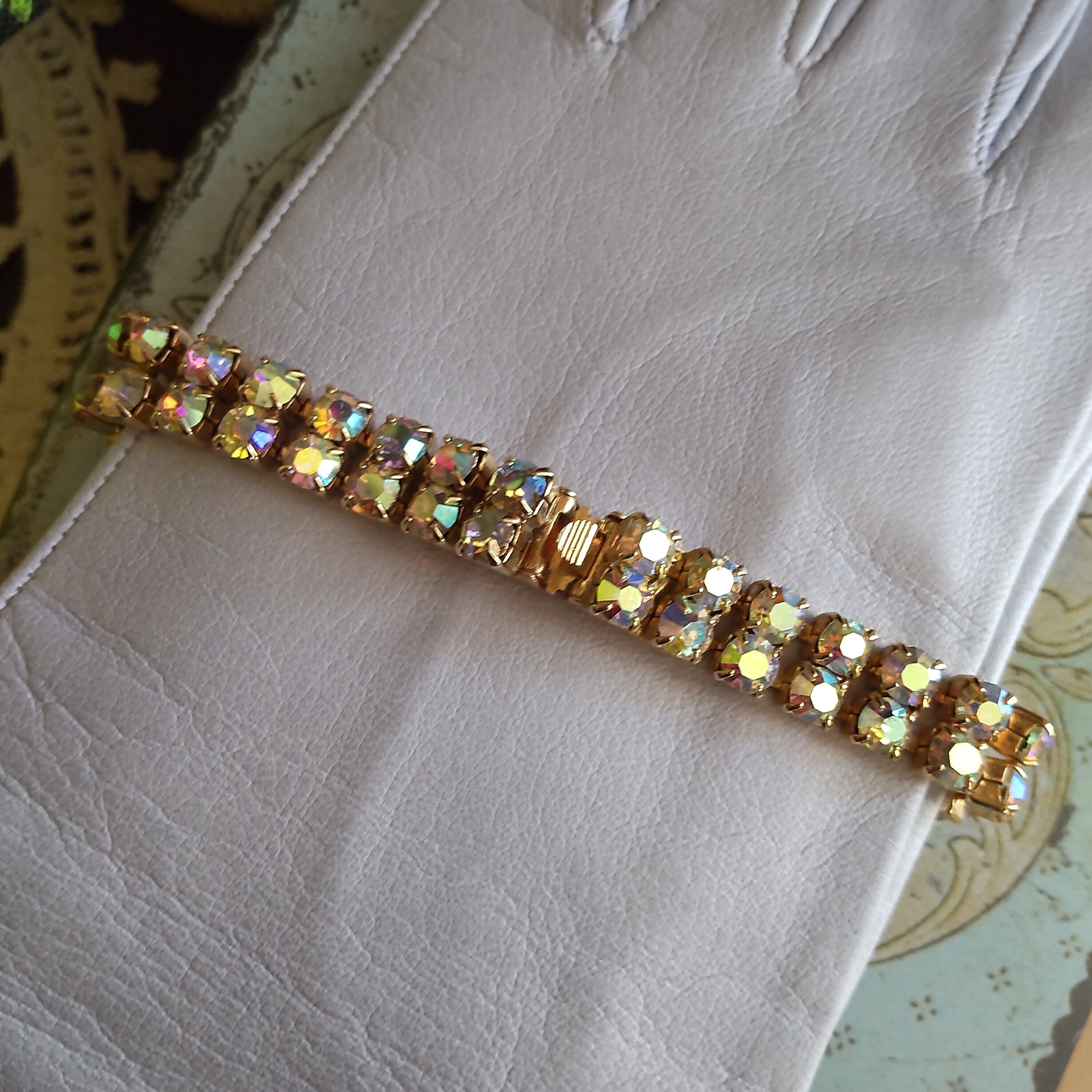 キラキラのガラスストーンがとても可愛らしいヴィンテージブレスレットです
