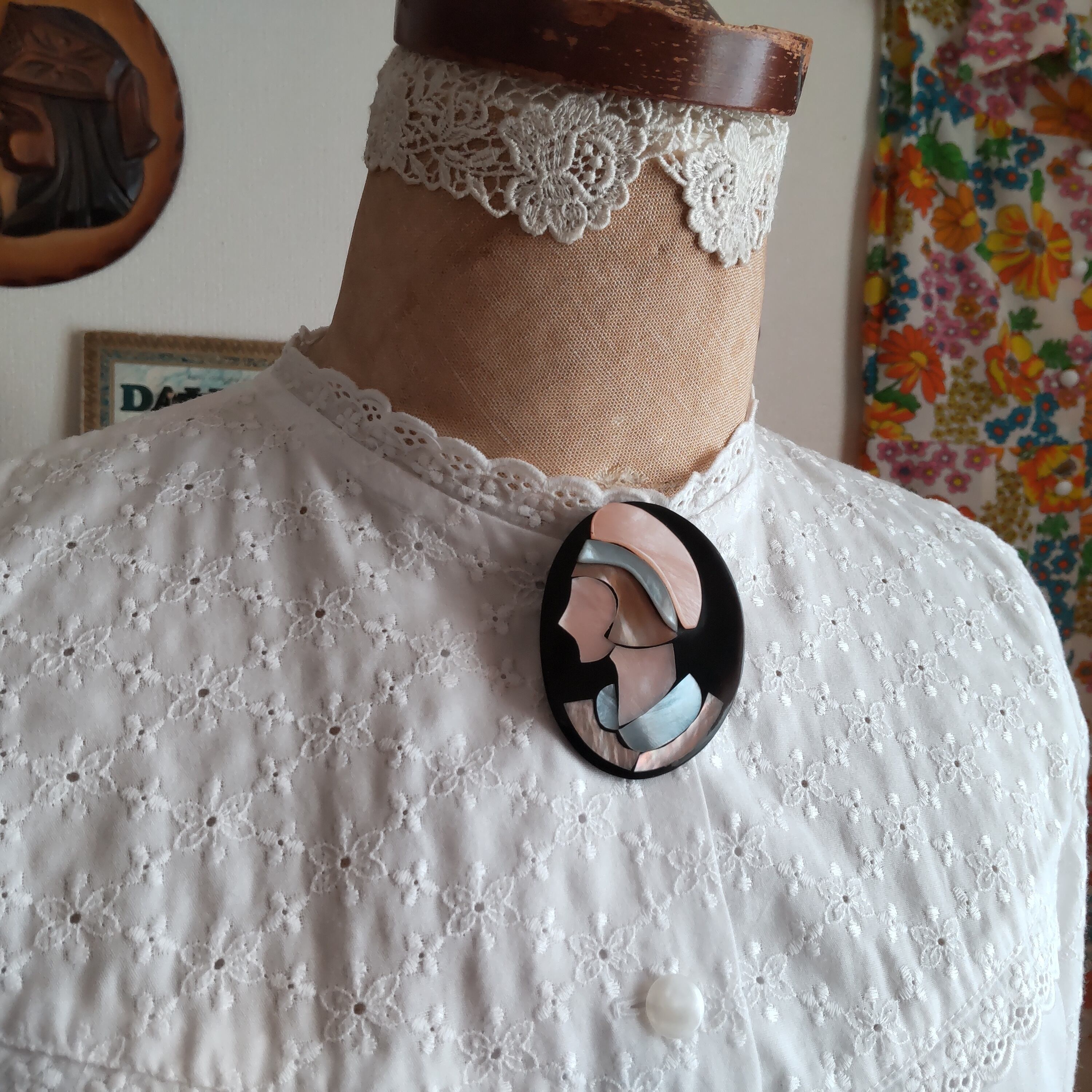 美しい貝のモザイクブローチです