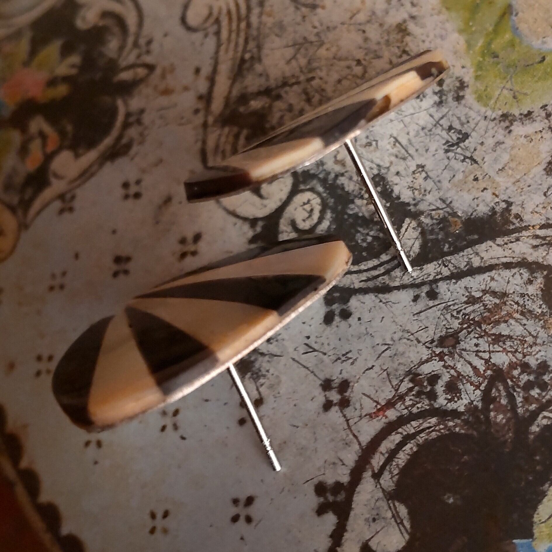 シェルモザイクのモダンピアス 金具新品(サージカルステンレス)