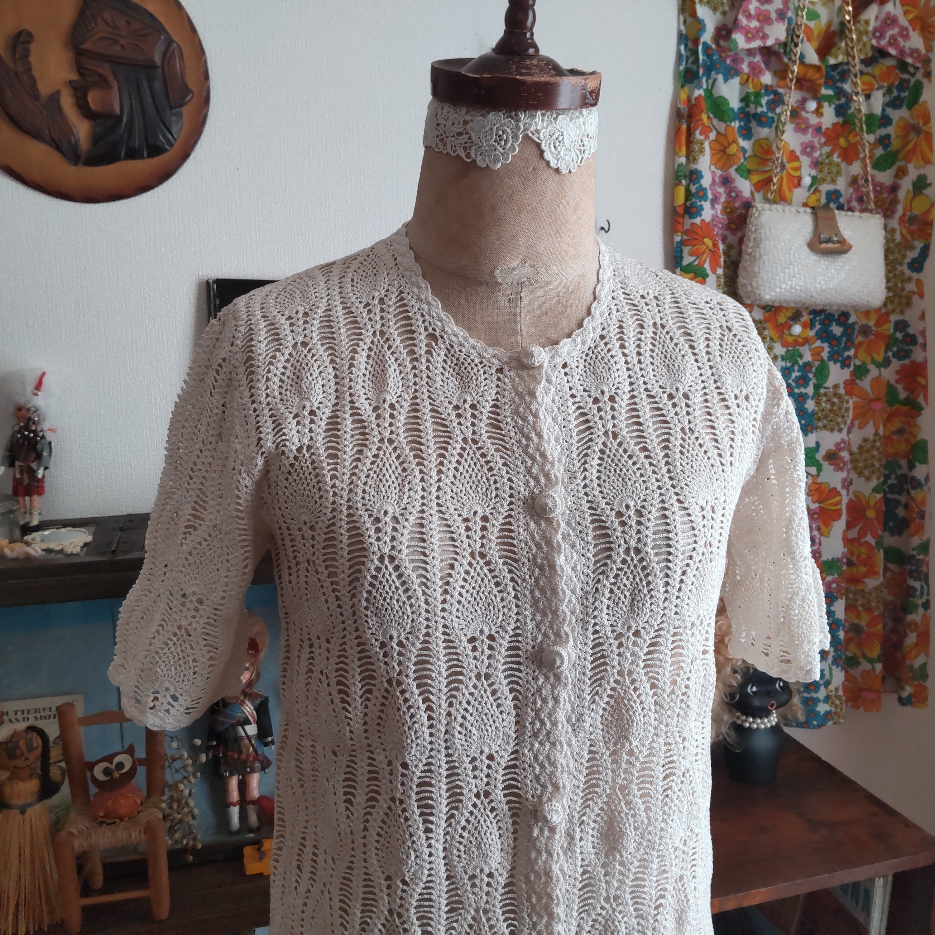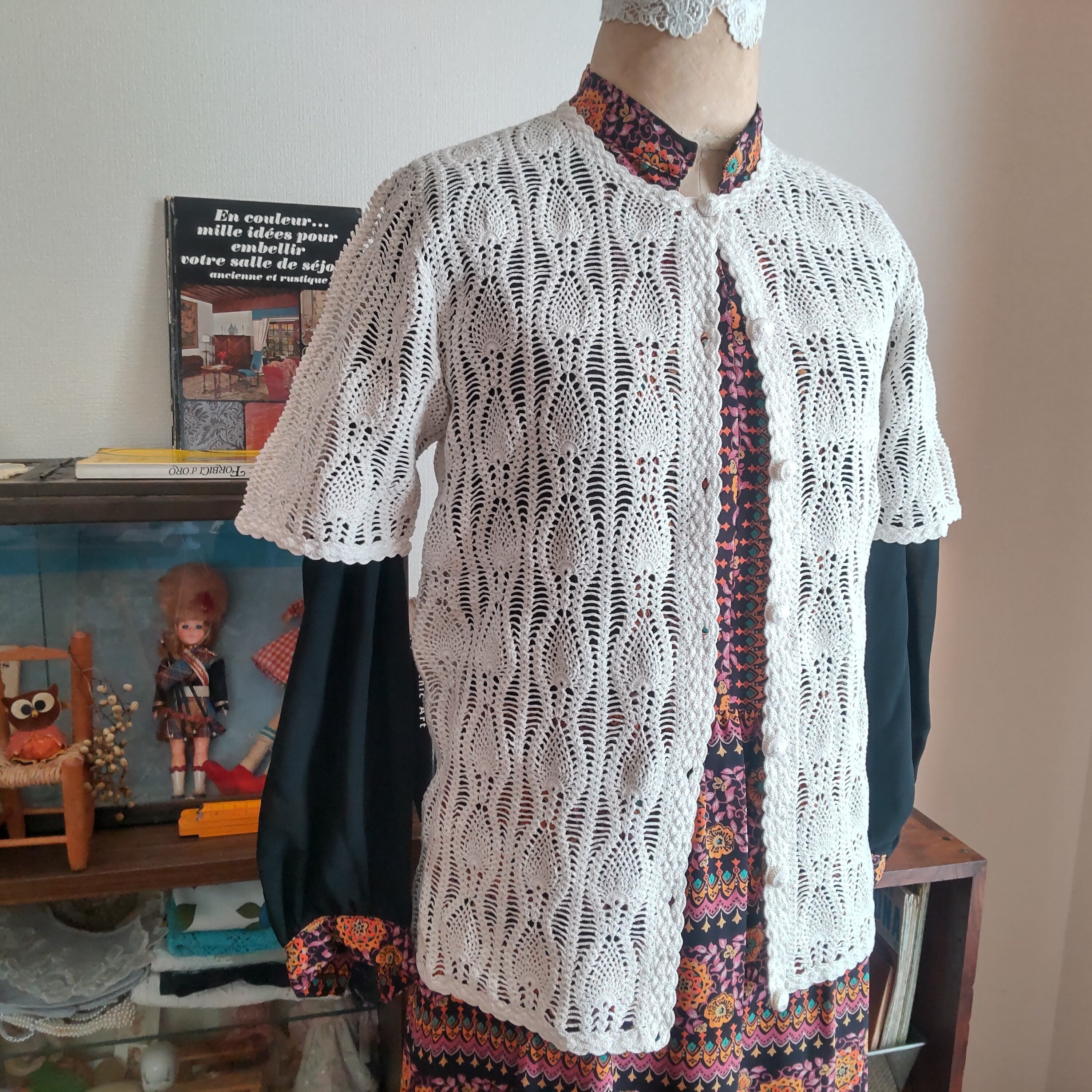 70~80年代に作られたヴィンテージニットで、半袖、前開きタイプのカーディガンになります
