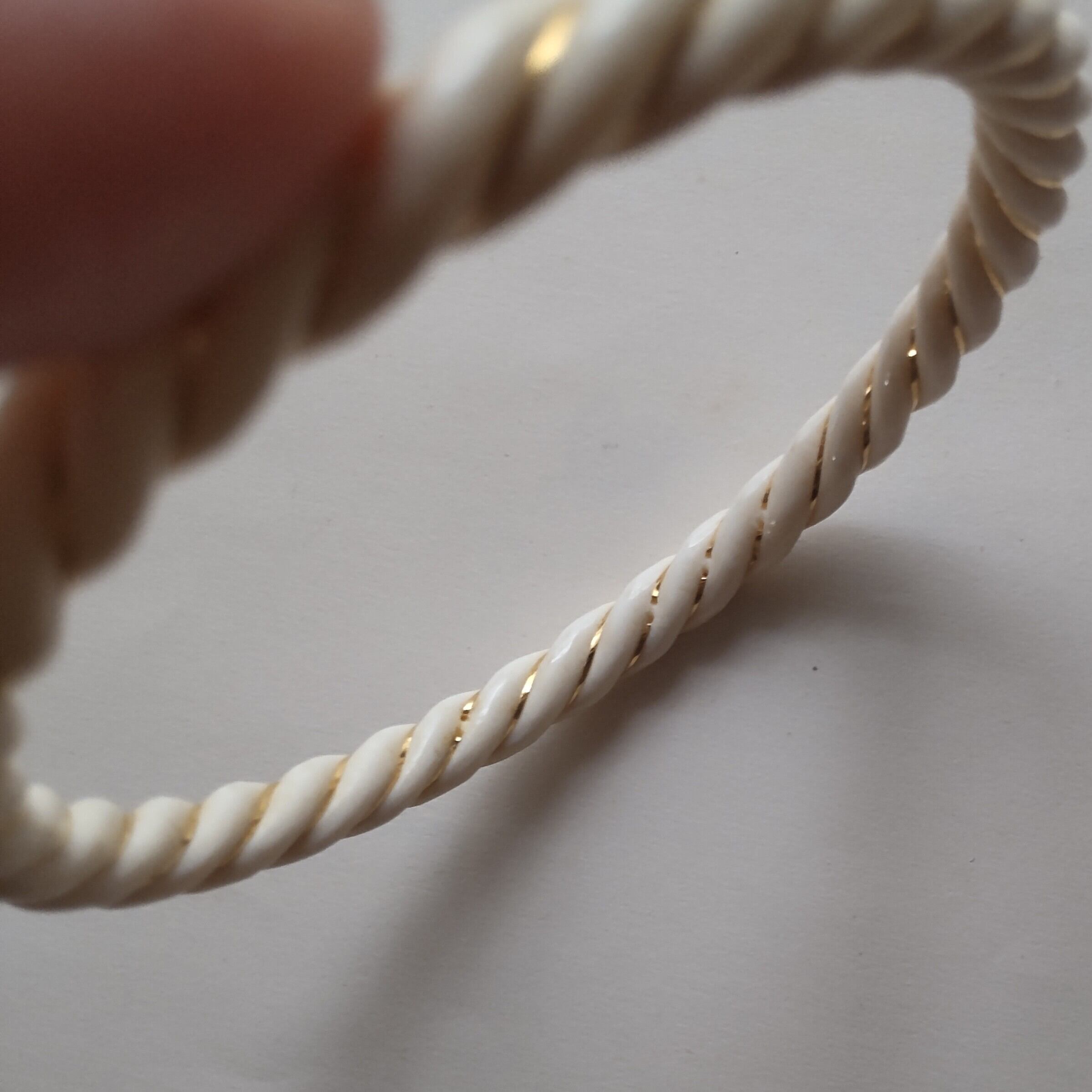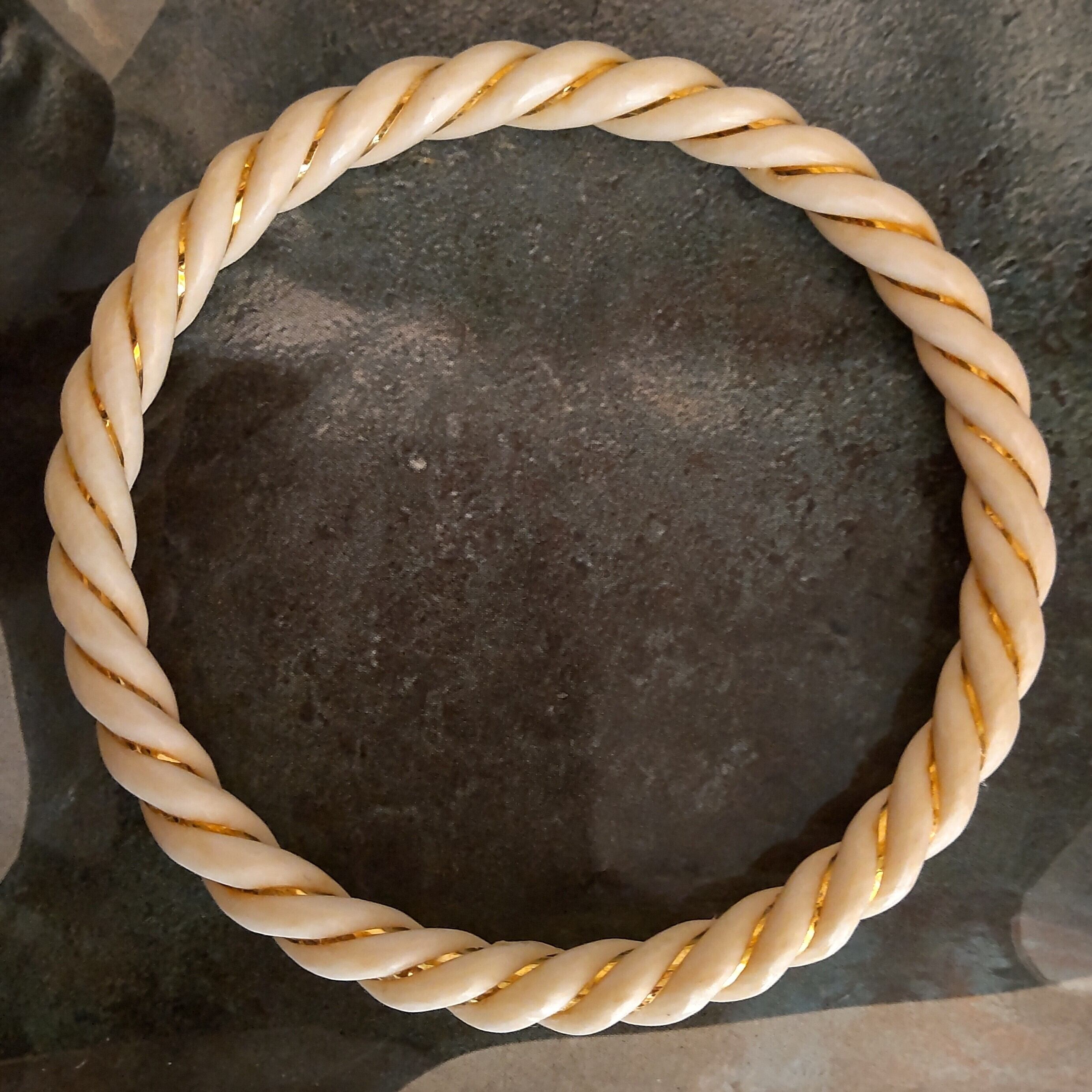 スパイラル状の彫りに14金の金糸が巻かれた天然素材のヴィンテージバングルです