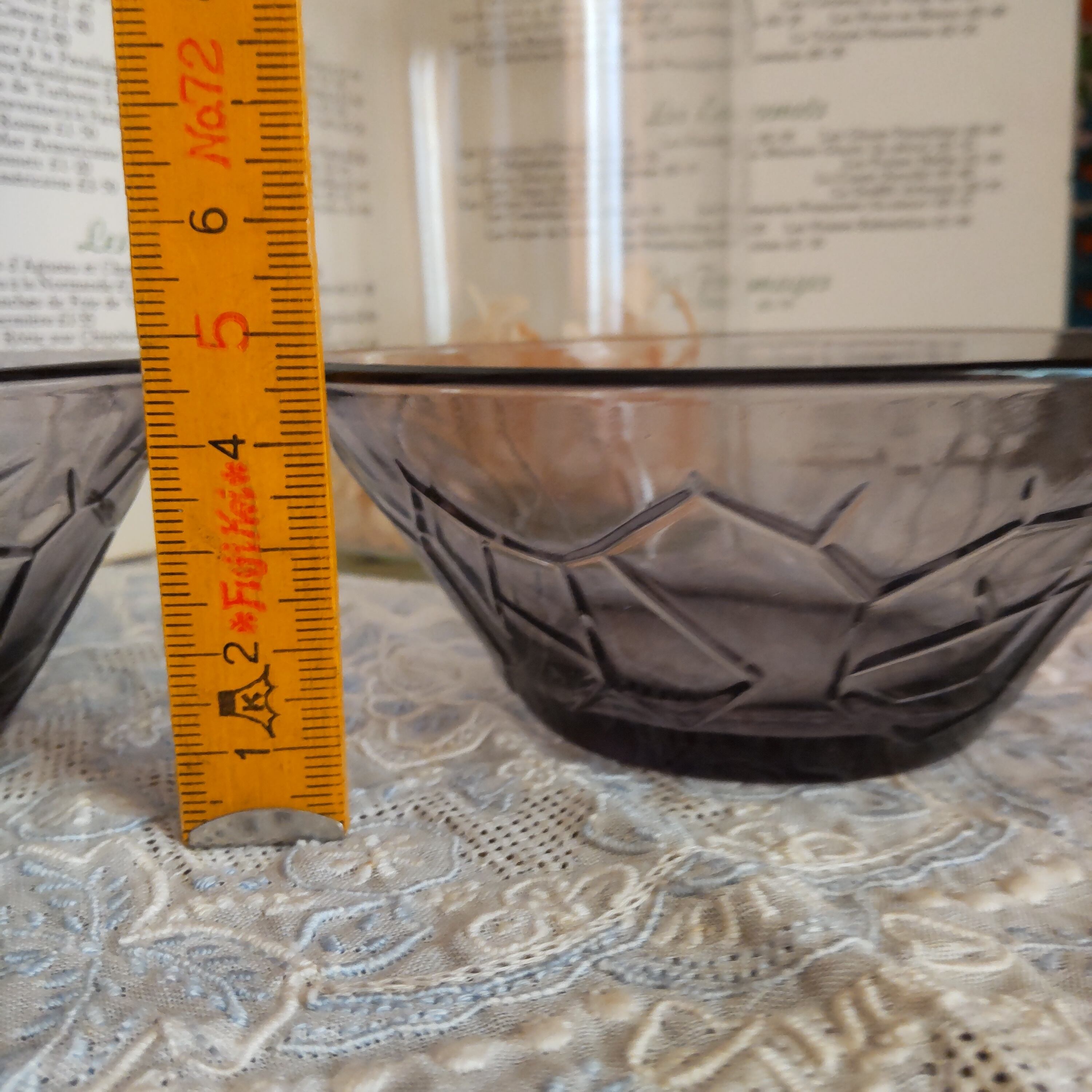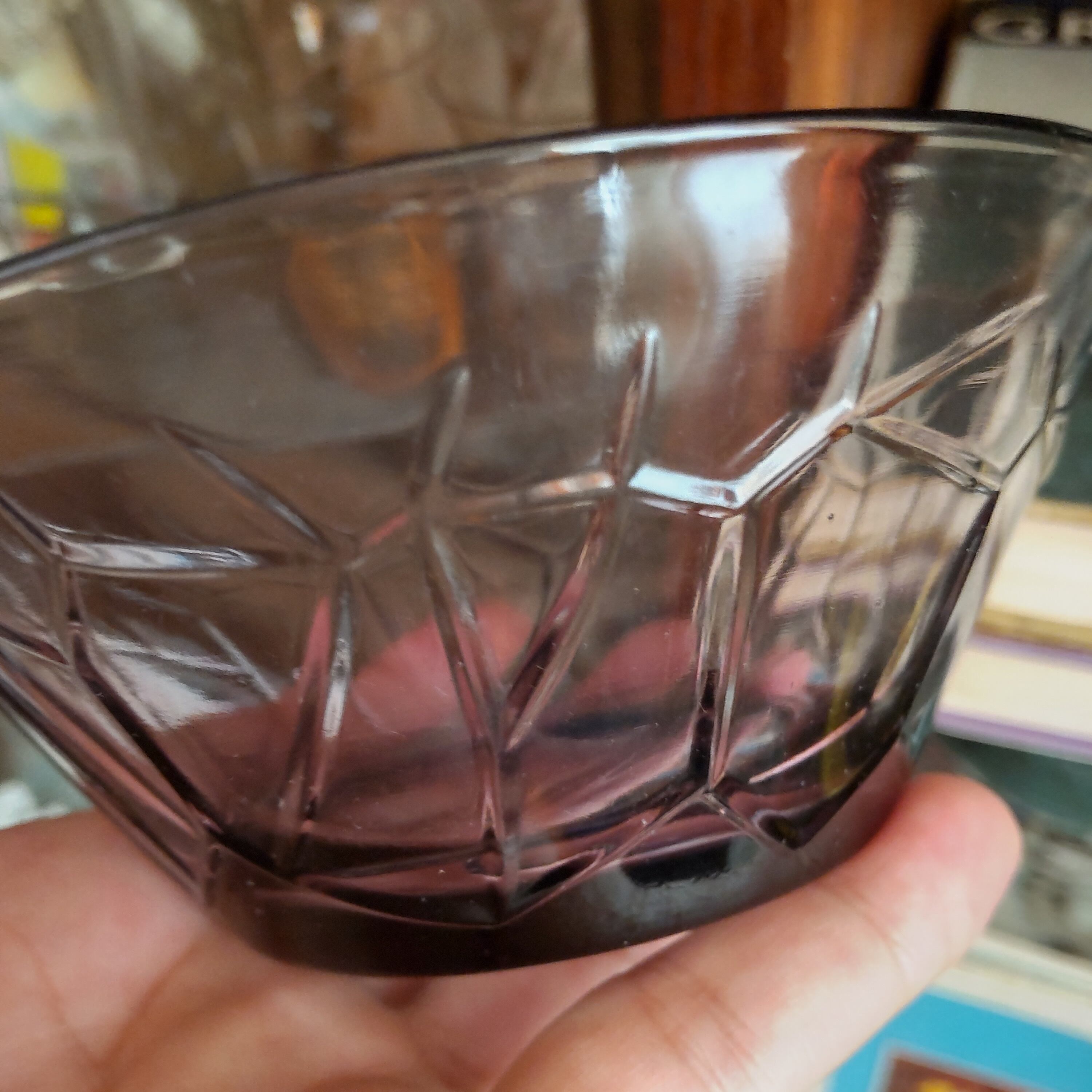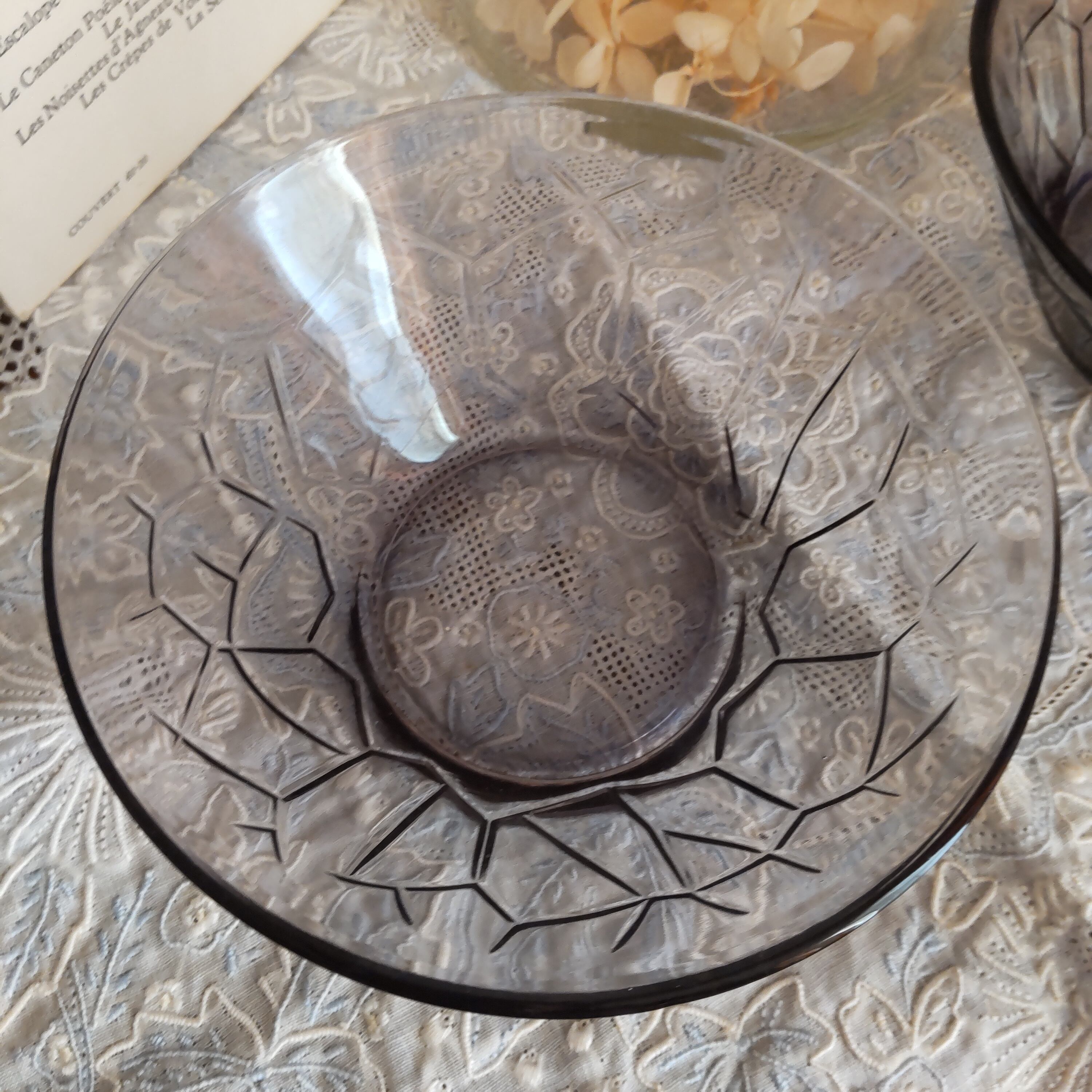 淡いすみれ色が美しいガラスの器で、メロンの模様のようなデザインがとても可愛らしいです