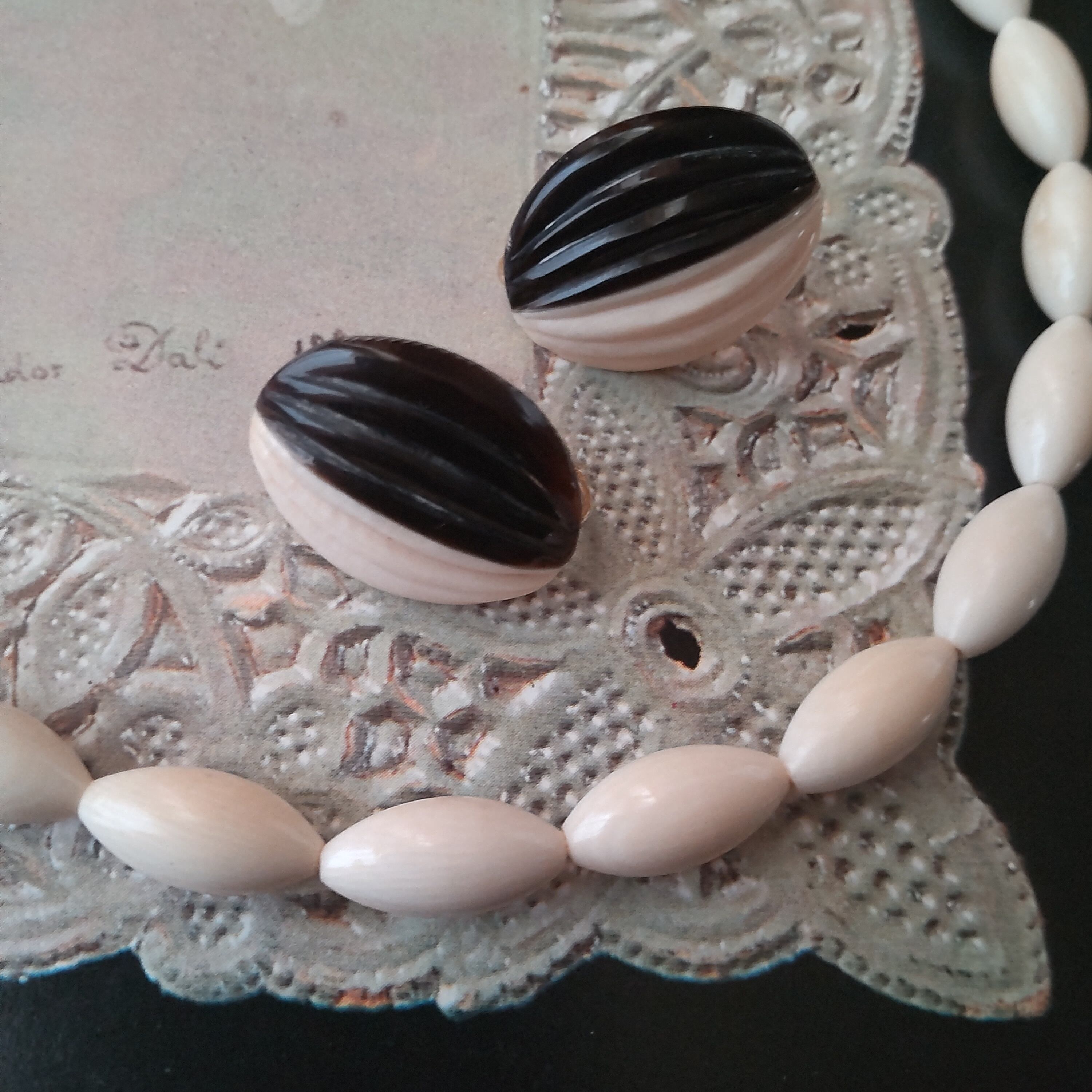 モダンでノスタルジックな印象の天然素材のヴィンテージイヤリングです