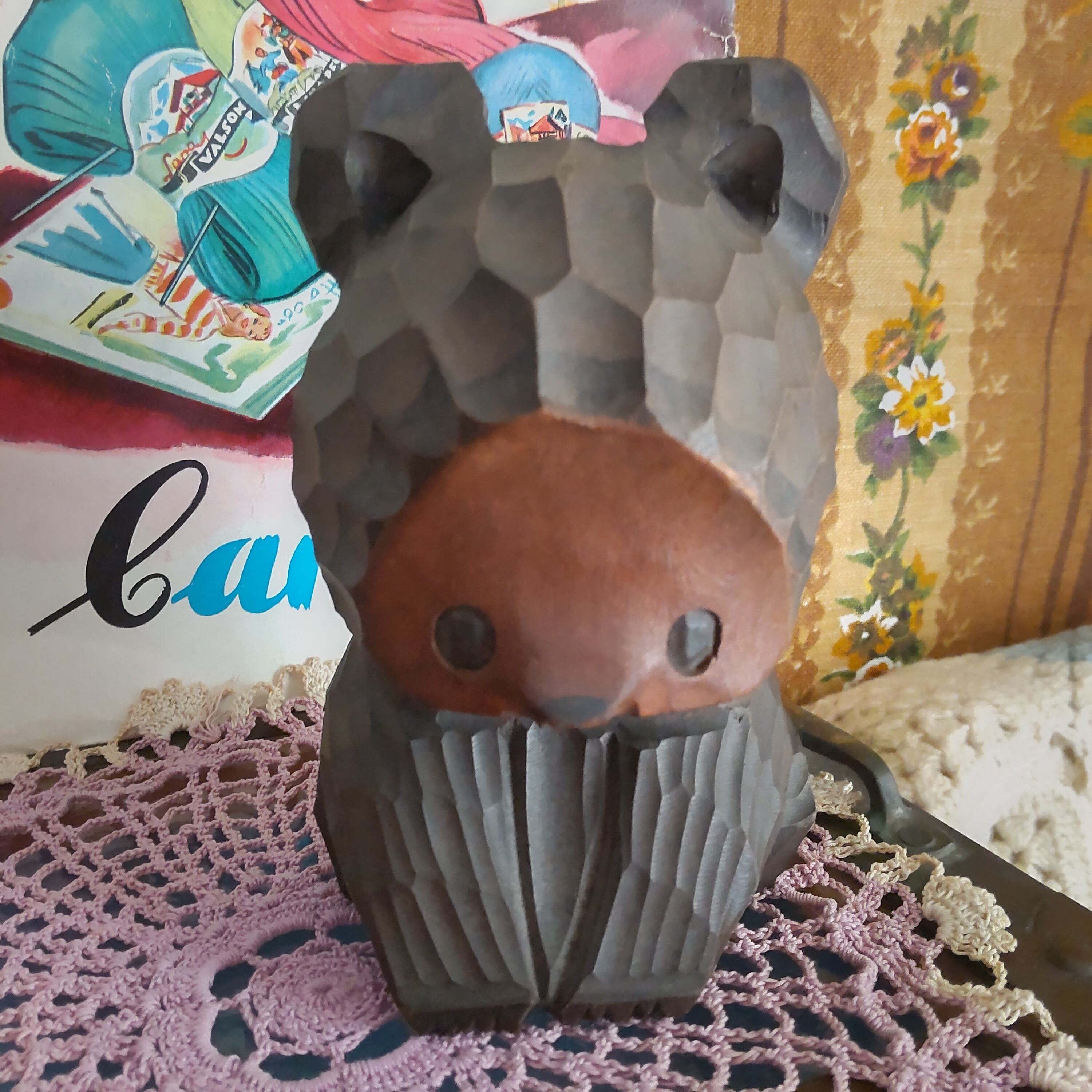 北海道アイヌ民族による民芸品で木彫りの熊の置物です