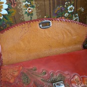 可愛らしい花模様のクラフトレザーの小さめクラッチバッグになりま