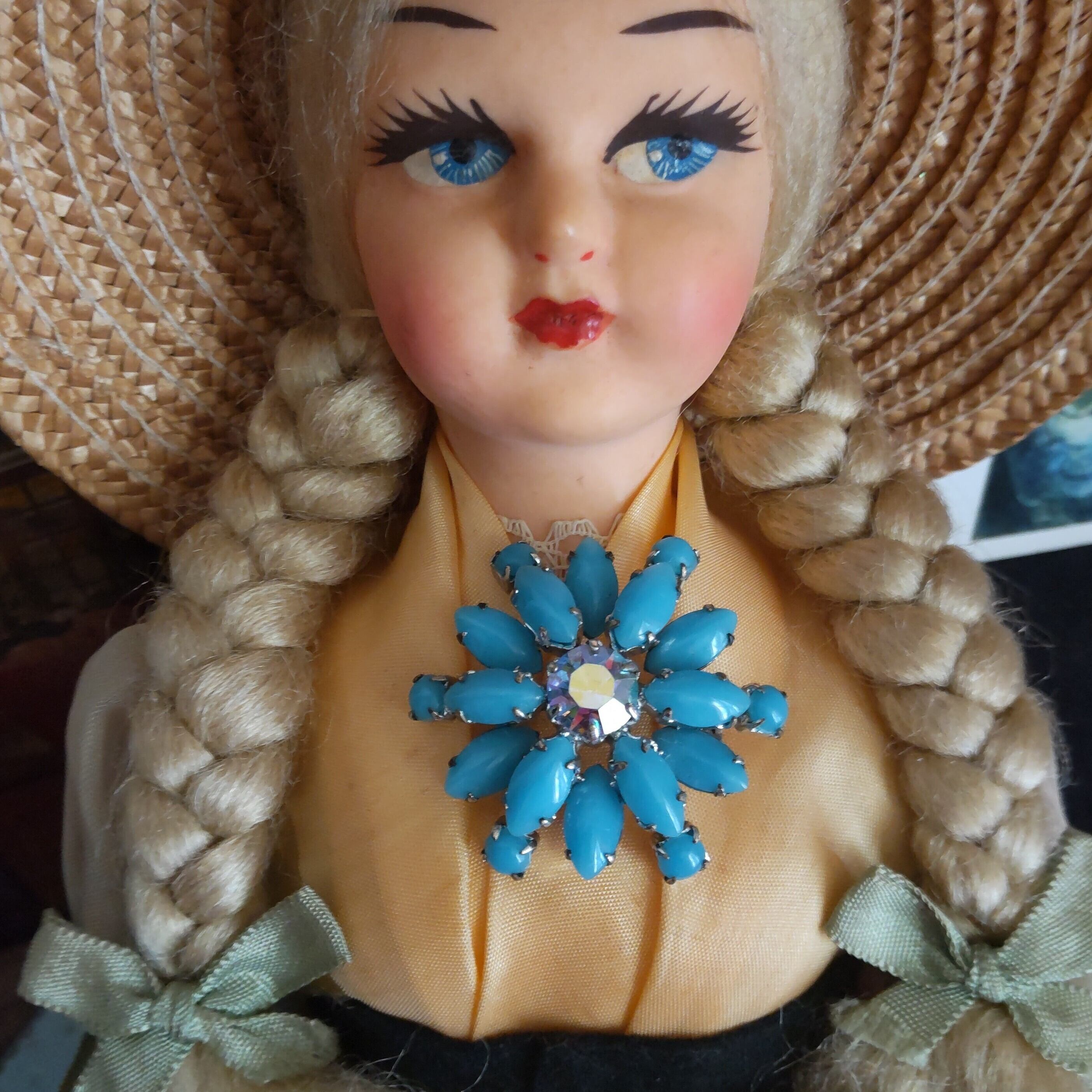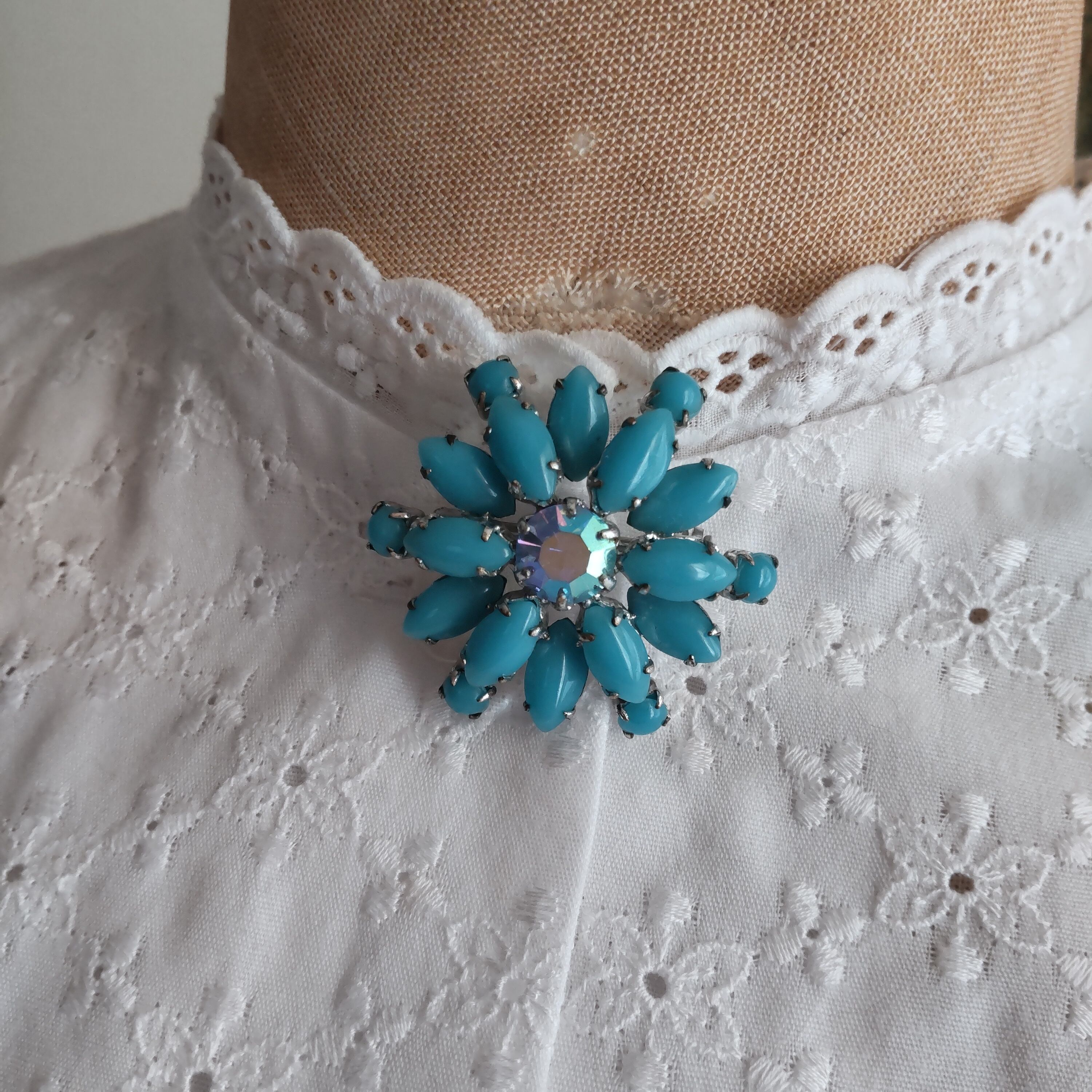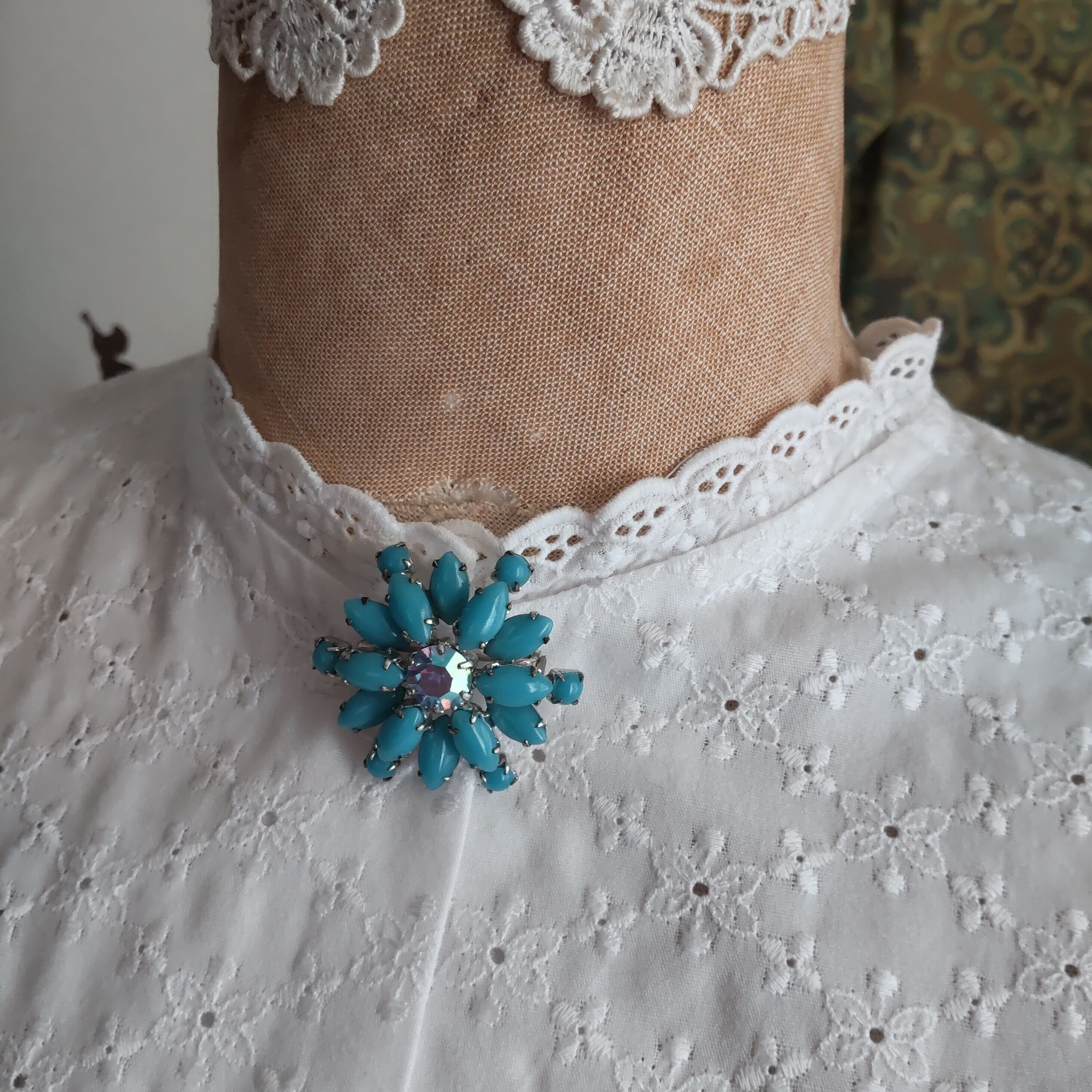 とてもかわいい色合いの硝子製ヴィンテージブローチです