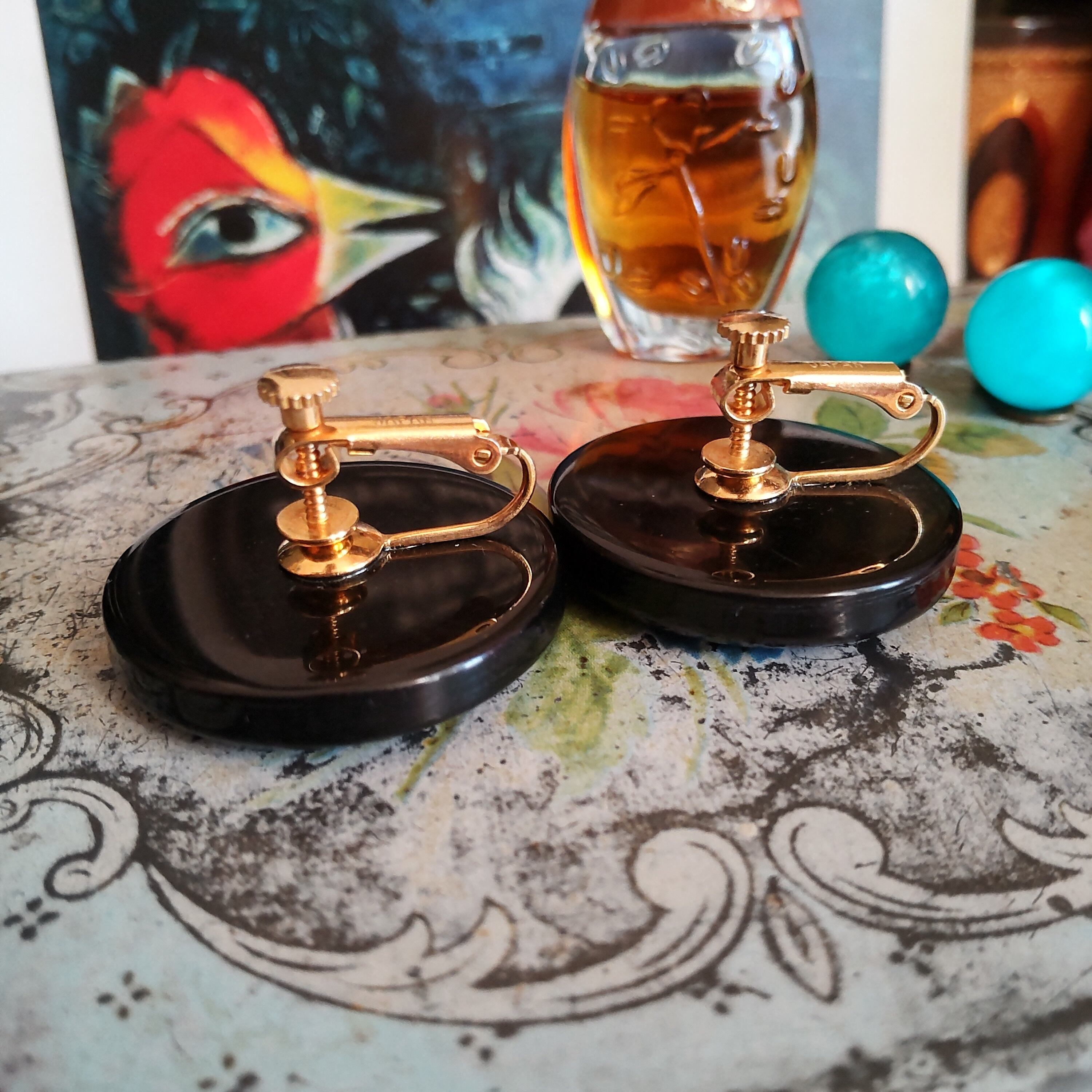 深みのあるマーブル模様が特徴的なヴィンテージイヤリングです