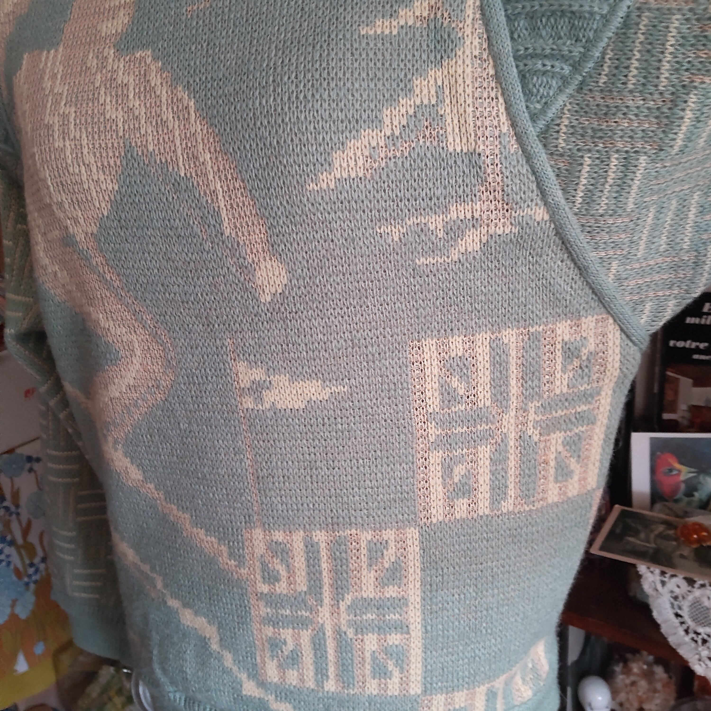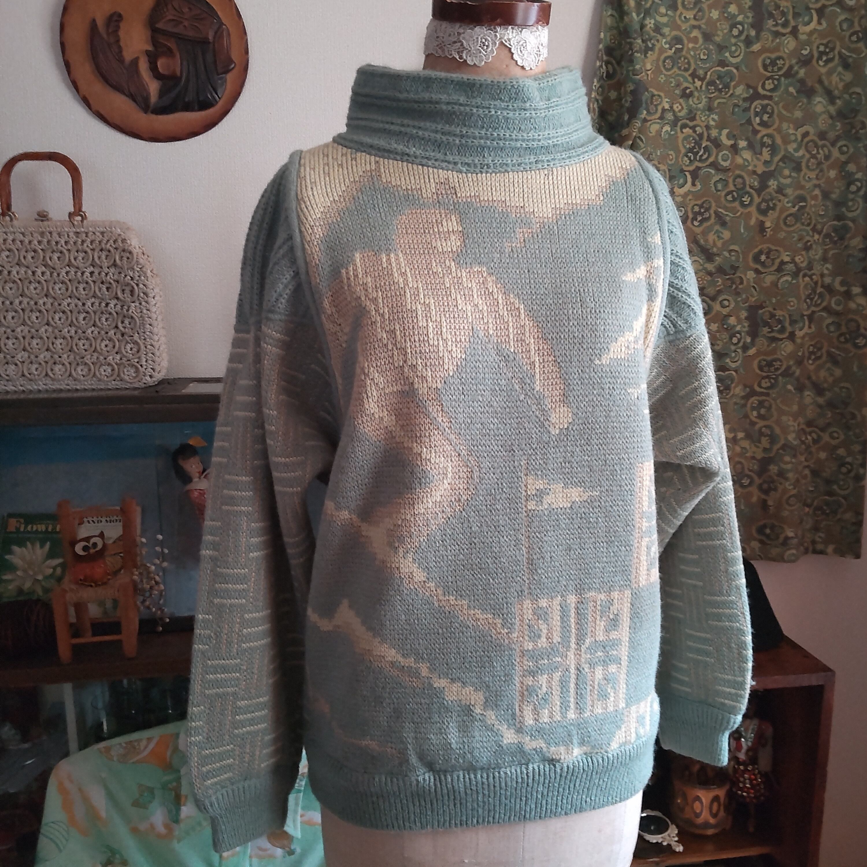 当時日本で販売されたmade in italyのニットで、80年代ならではのデザインと珍しい色柄が個性的で素敵です