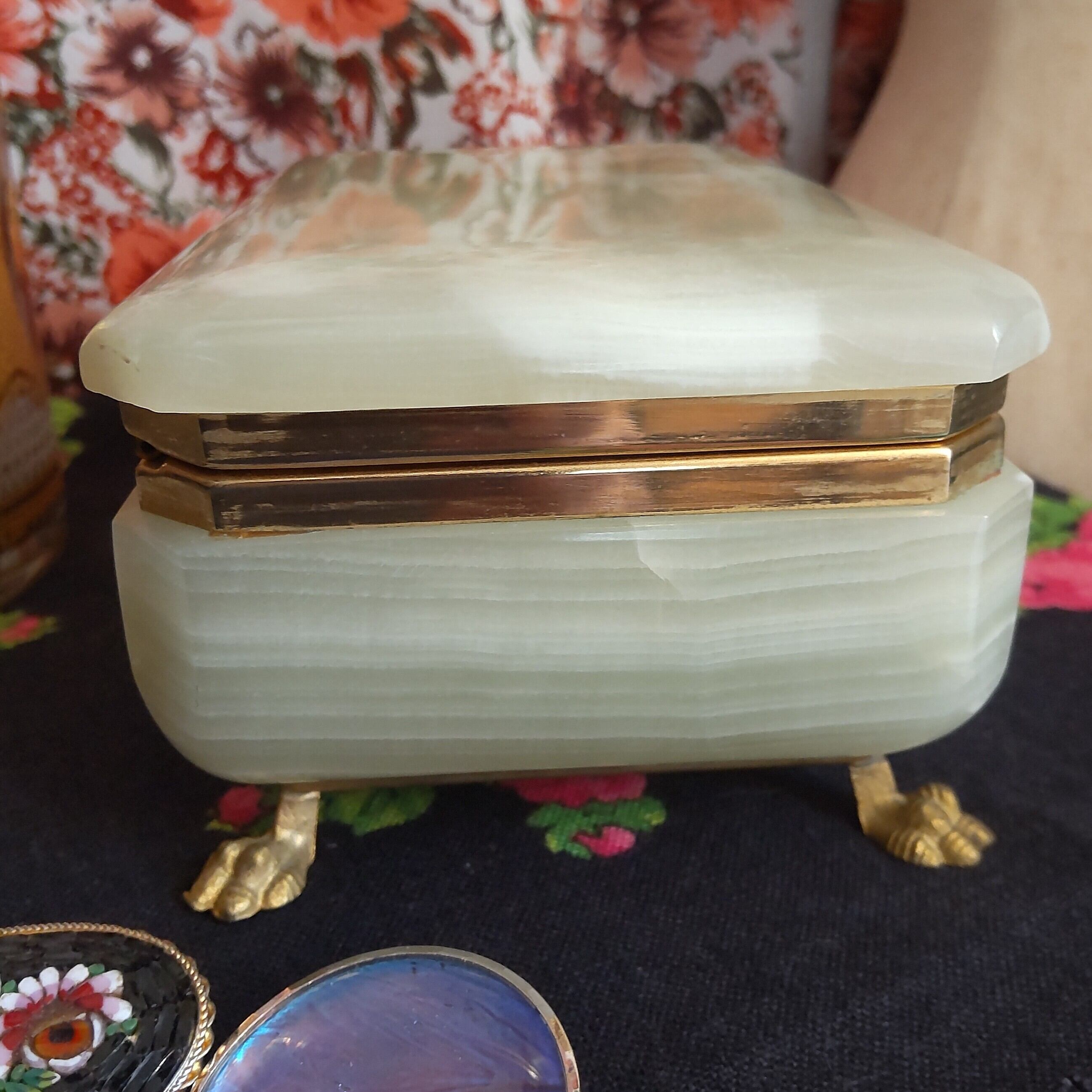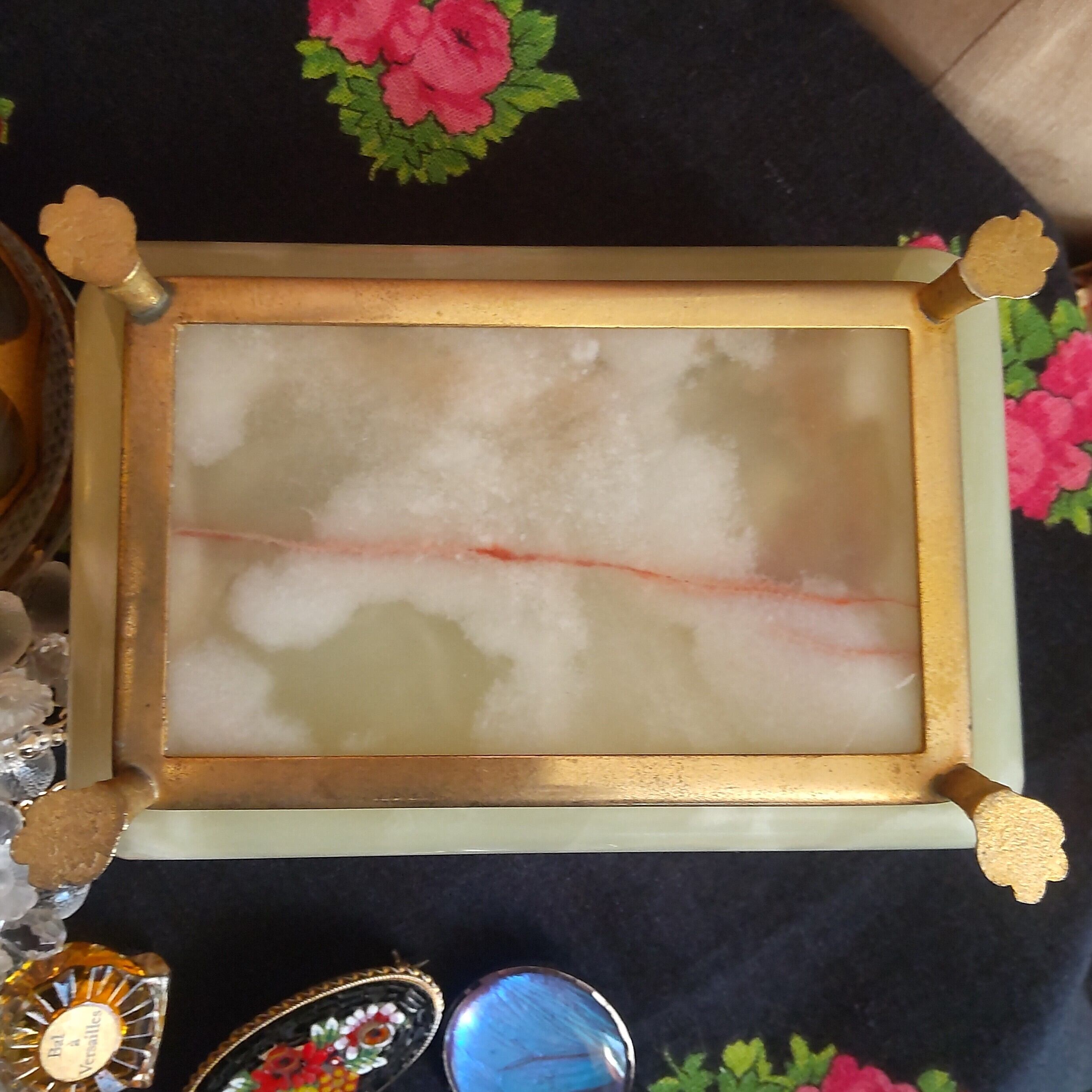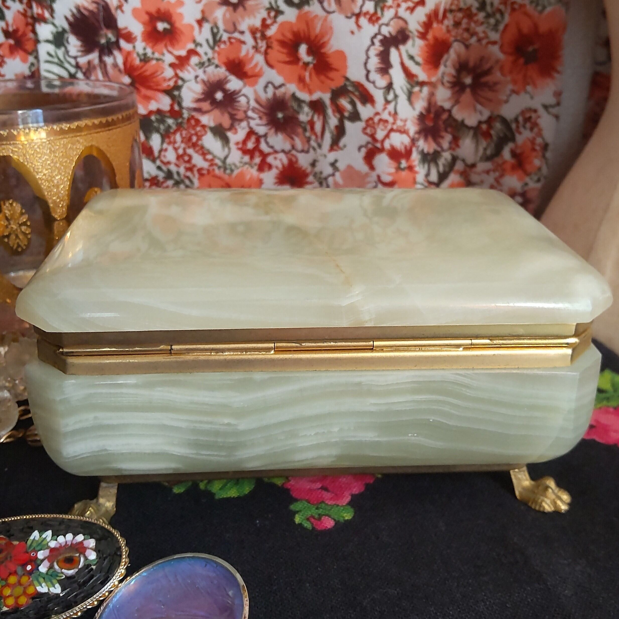 とても美しいグリーンオニキスのヴィンテージジュエリーケースです