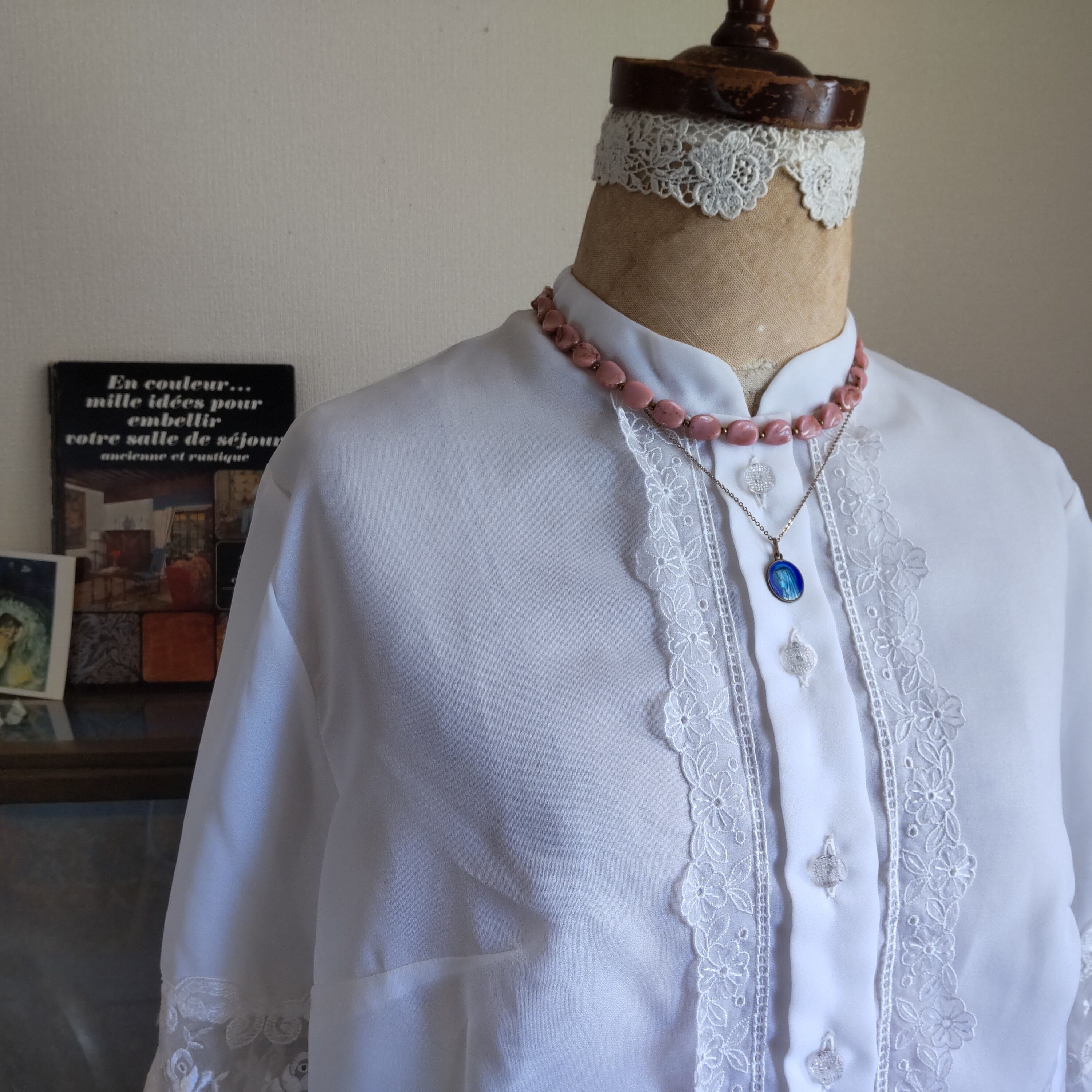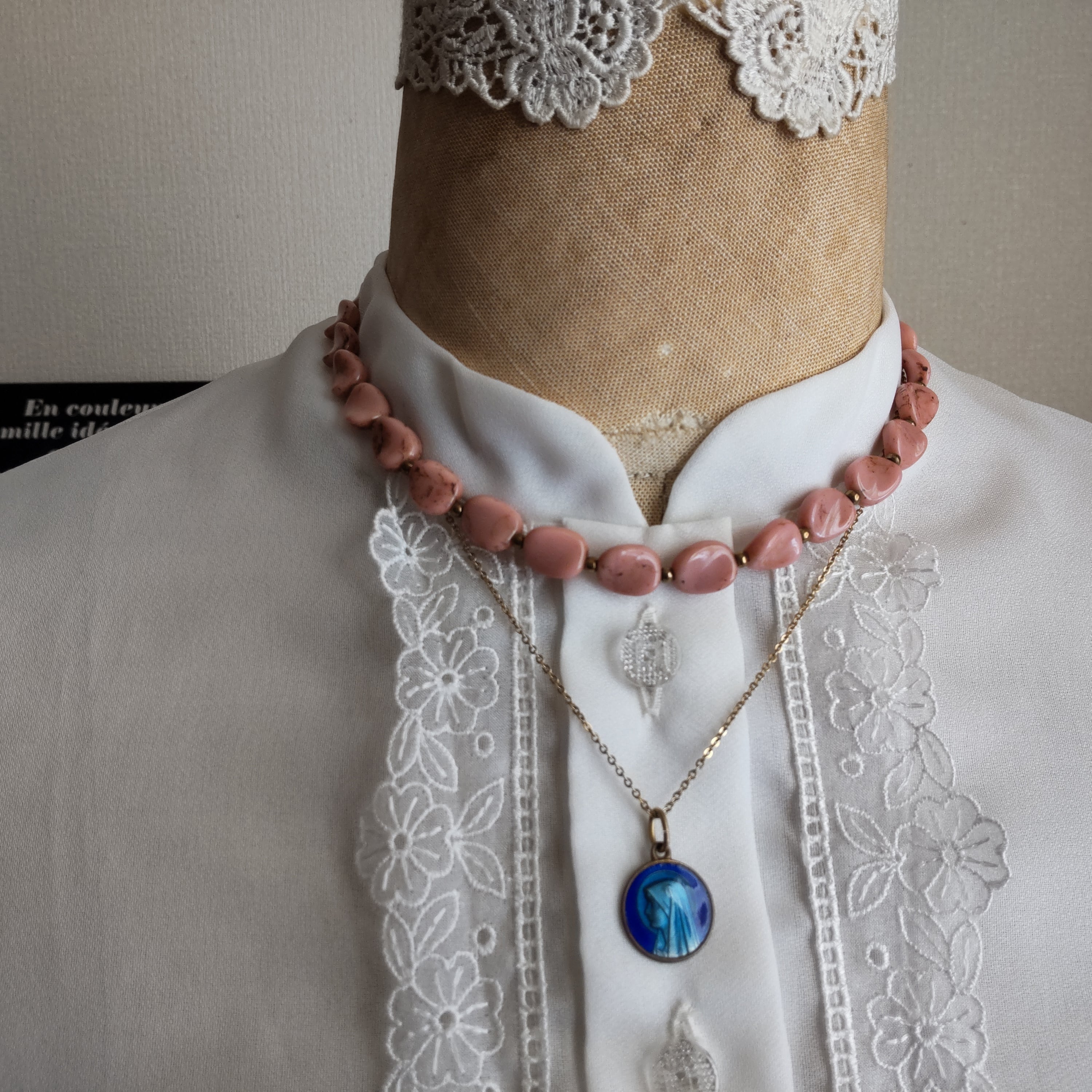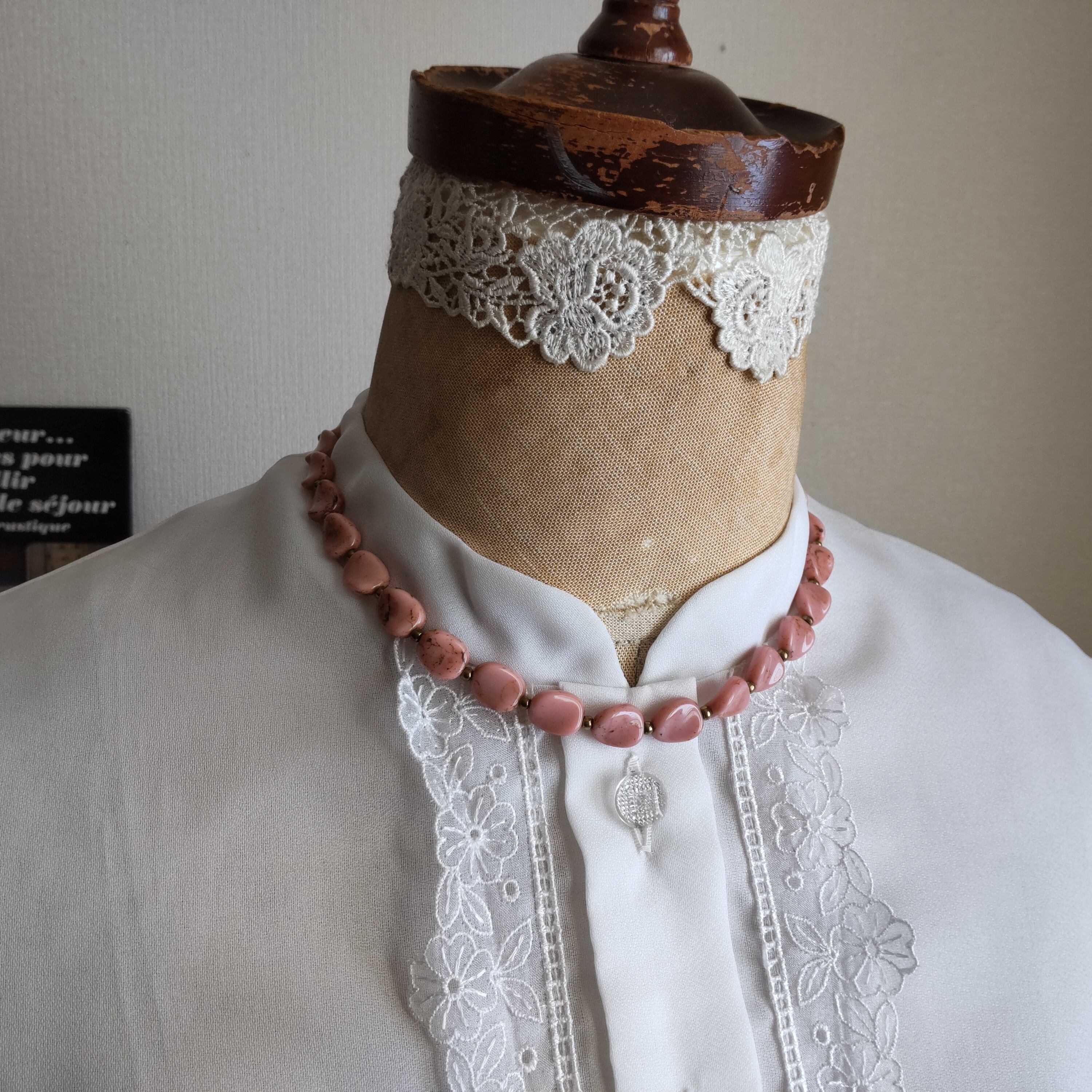 アンティークローズカラーのノスタルジックで可愛らしい雰囲気のヴィンテージネックレスです