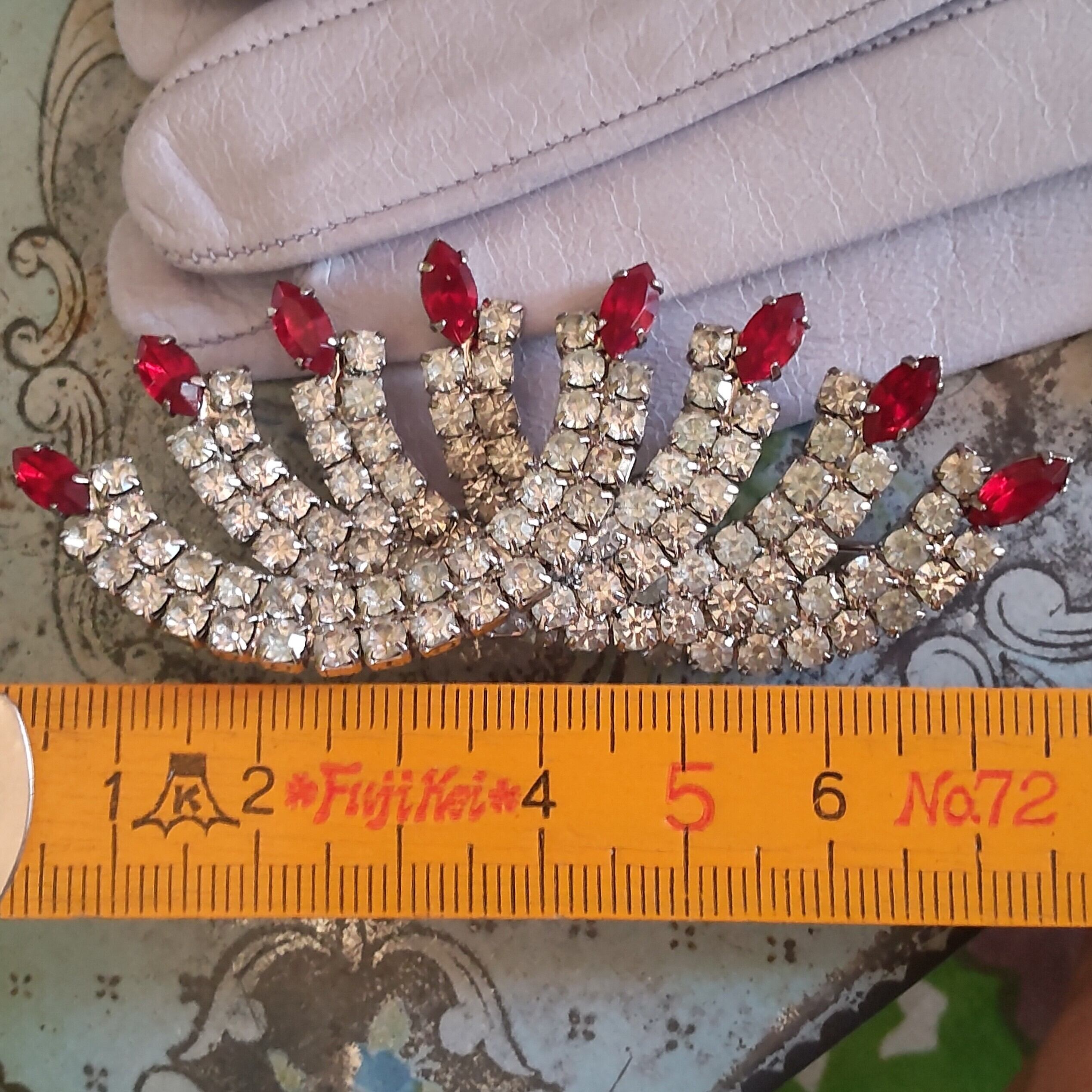 美しいガラスストーンが並んだ立体的でユニークなヴィンテージブローチです