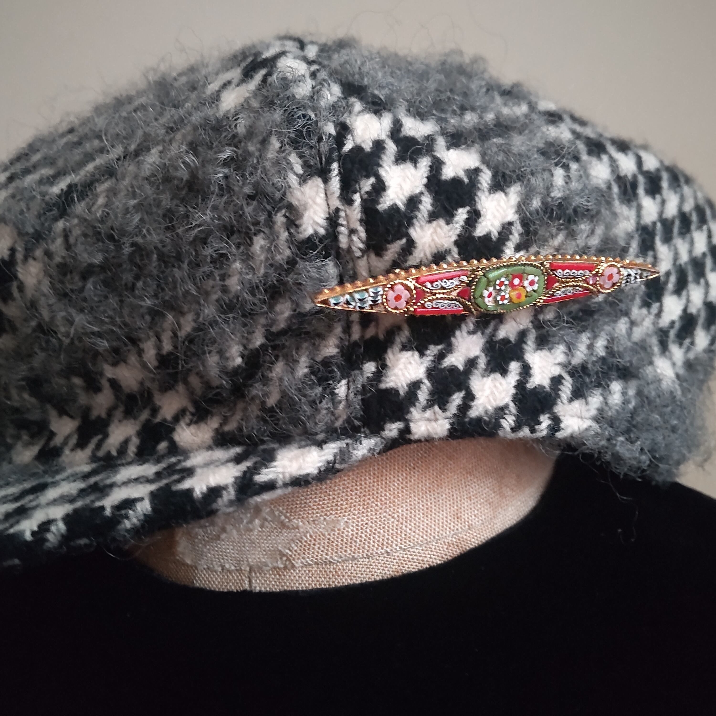 モザイク硝子にゴールドの縁取デザインもとても可愛らしく、繊細で、美しいブローチです