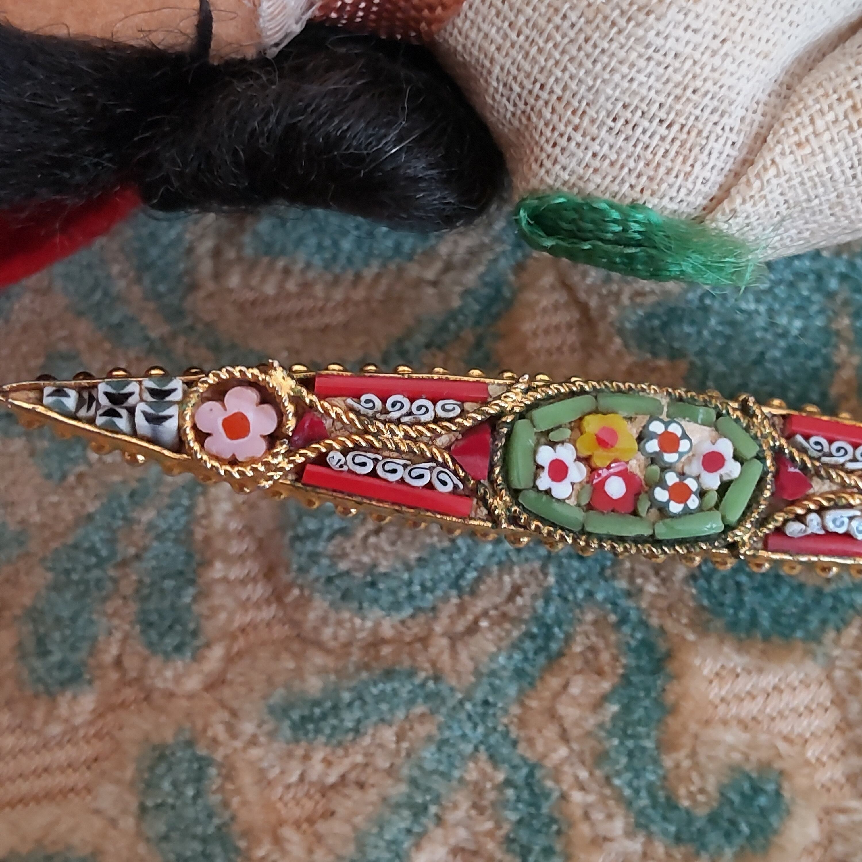 ベネチア硝子 マイクロモザイクのアンティークブローチ
